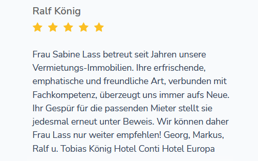 Erfahrung & Erfolg sprechen für sich – nicht nur aus dem Munde meiner vielen Kunden!Hier eine kleine Auswahl: Und wann schicken Sie mit Ihre Referenz?Ich freue mich schon jetzt darauf!